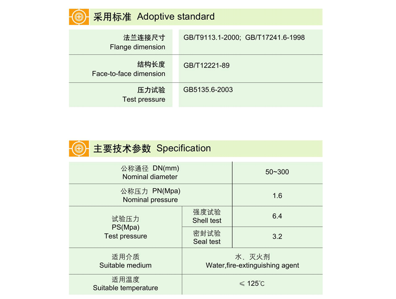 主要性能規(guī)范:公稱通經(jīng) 公稱壓力 工作溫度 密封試驗(yàn) 強(qiáng)度試驗(yàn) 適用介質(zhì) DN50~400mm 1.0/1.6/2.5MPa -10℃~-80℃ 1.1倍公稱壓力 1.5倍公稱壓力 水、油、氣等。