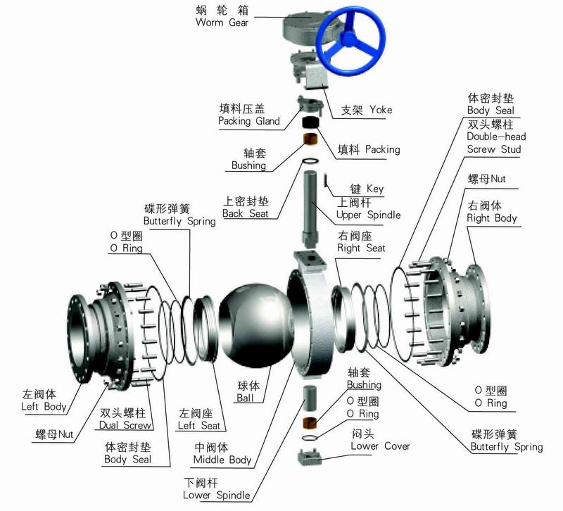 • 產品介紹:    Q347固定蝸輪球閥兩分式和三段式固定球閥又稱側裝分體式球閥,將閥體沿與閥門通道軸線相垂直的截面分為不對稱的左右兩半,它在管道上主要用于切斷、分配和改變介質流動方面。它的樞軸結構保證了了準確的球體位置。標準閥座采用彈簧結構,將閥座推向球體,保證了良好的低壓密封性能。該球閥閥前,閥后閥座都能密封,即所謂雙向密封特性,利用自帶的排放閥,閥體中腔可向外排放。樞軸采用防吹出保護結構,低摩擦系數的軸承等。